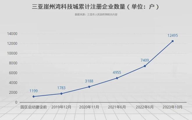 截至2023年10月,崖州湾科技城累计注册企业数已经超过12000家,包括南繁、深海、数字经济、生命科学、跨境贸易、金融等产业企业。